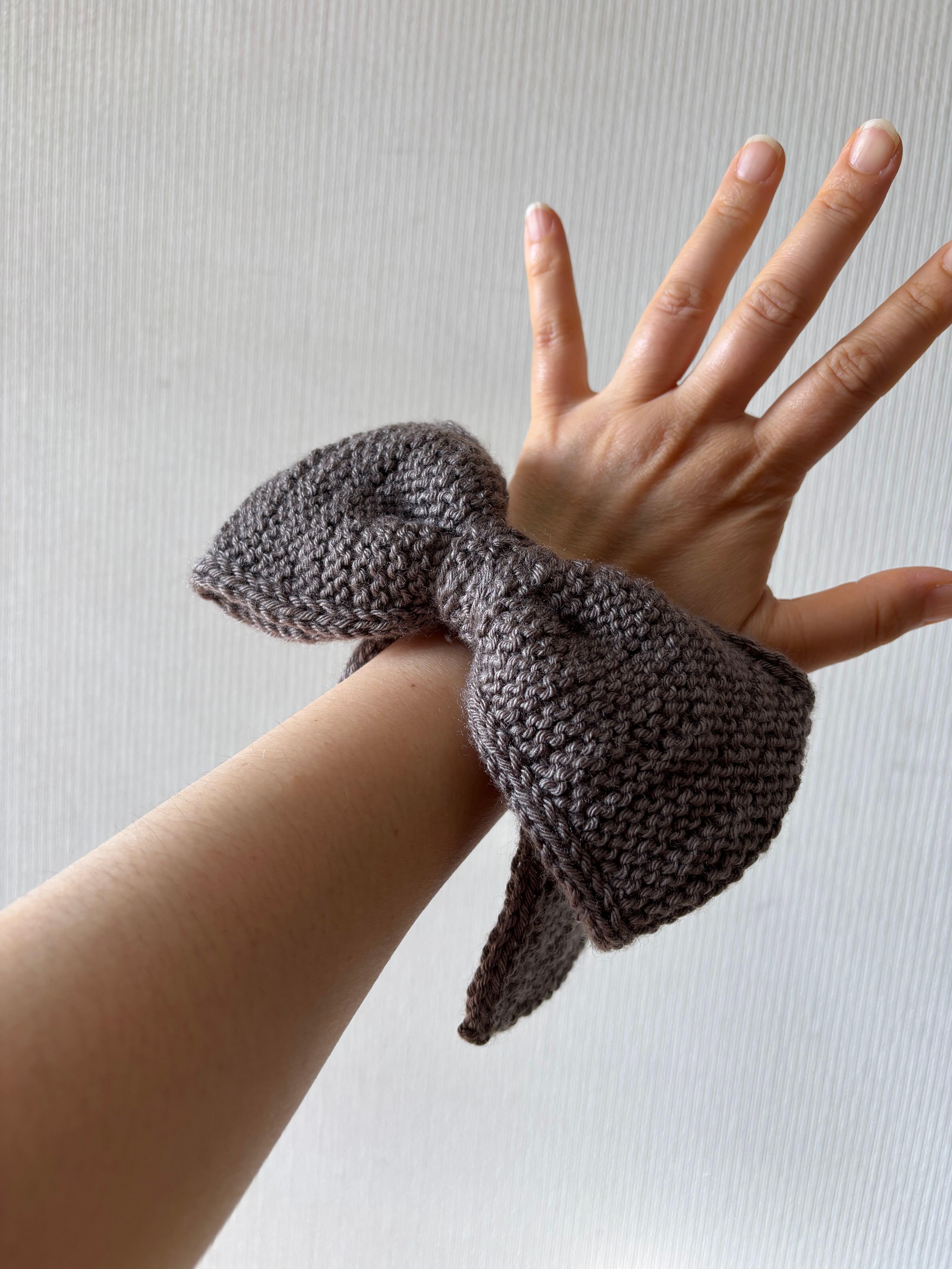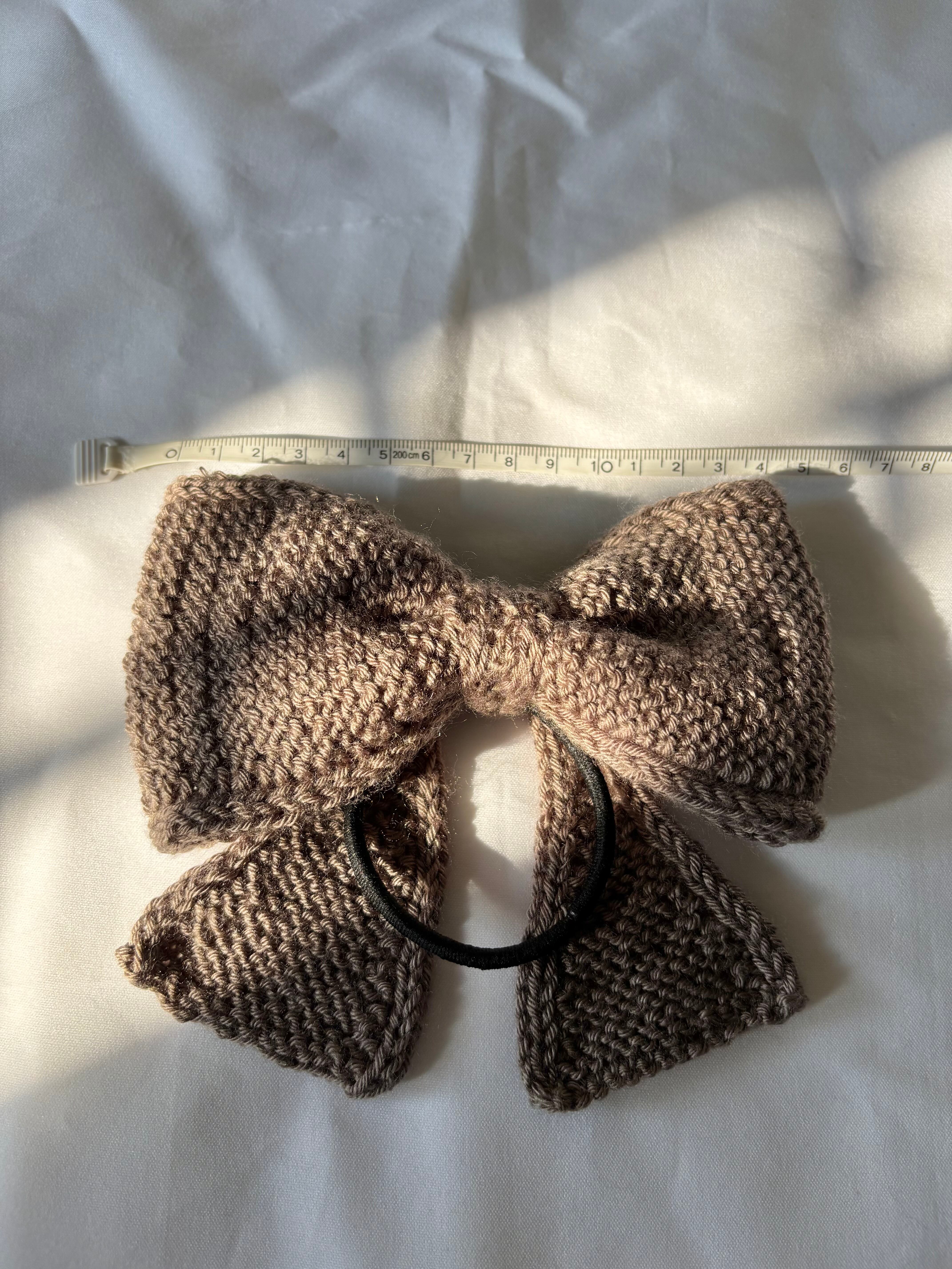 あみばあにリボン編んでと伝えたら、目が見えないため色が分からず茶色で編んでました。地味めの色合いですが、フォーマルな場面に合うと思い、出品させていただきます。大きめで目立つデザインとなってます。