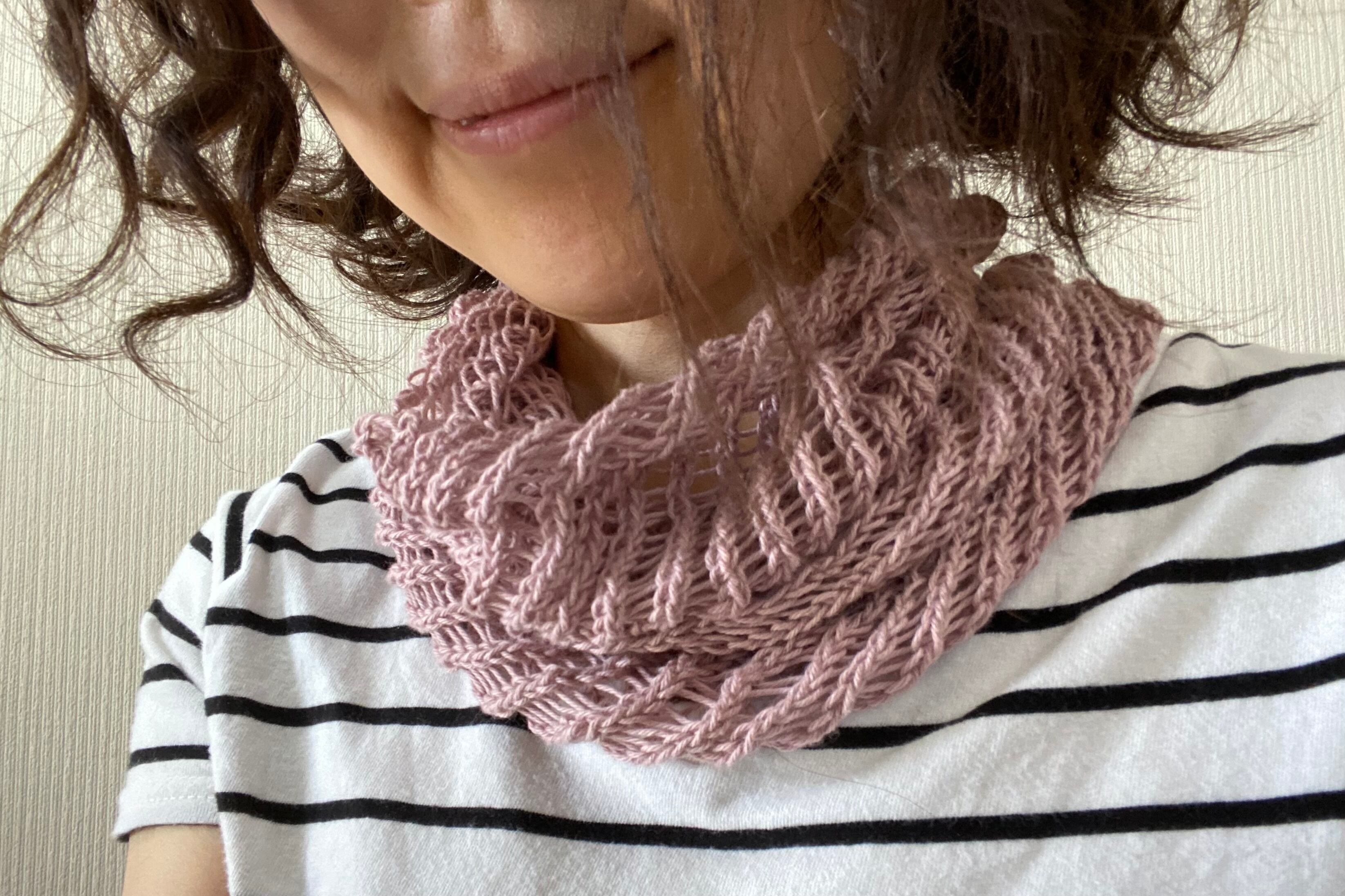今流行りのくすみカラーの糸で編んだ、スヌードをご紹介します。綿100%の糸を使用していて、斜めカゴメ編みで編んでます。緩めに仕上がっていますので夏に最適かと思います。お洋服の彩りにいかがでしょうか?